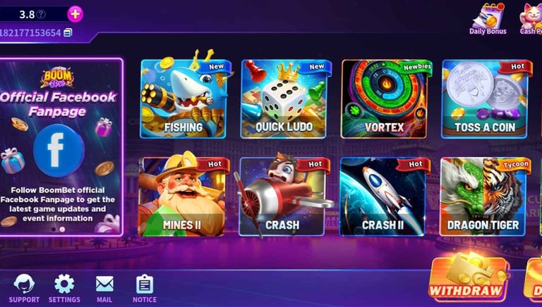 Real-Money Casino Action: Take your gaming to the next level with Boom Bet game download. Play real-money games and experience the adrenaline rush of winning big. With secure transactions and fair play, you can focus on the fun while we take care of the rest.
